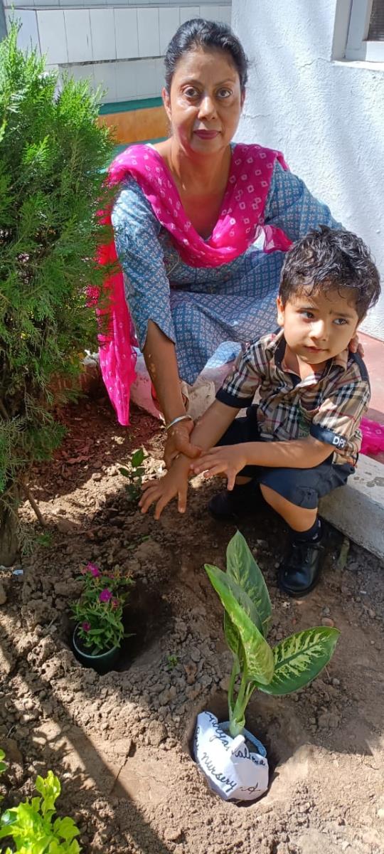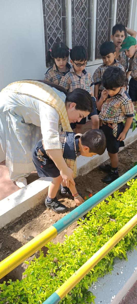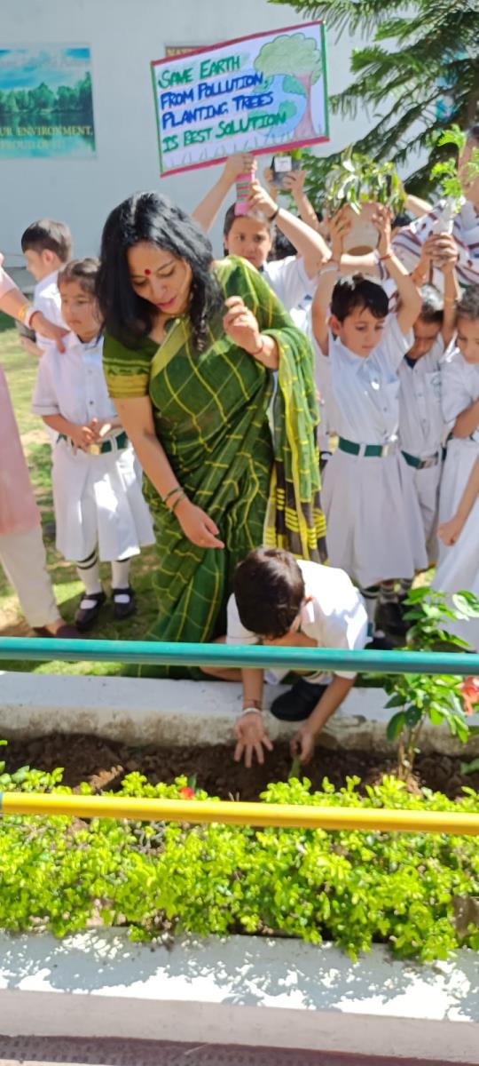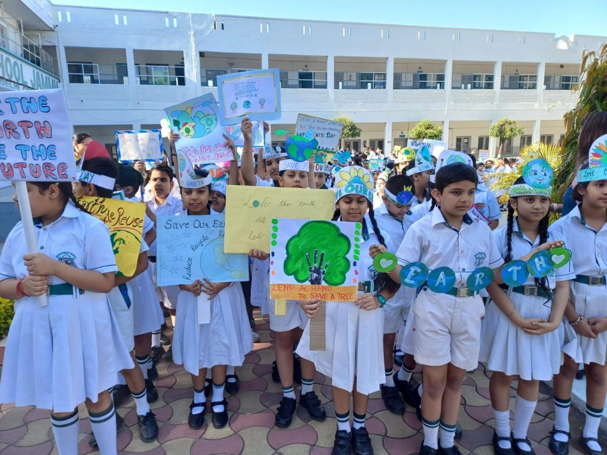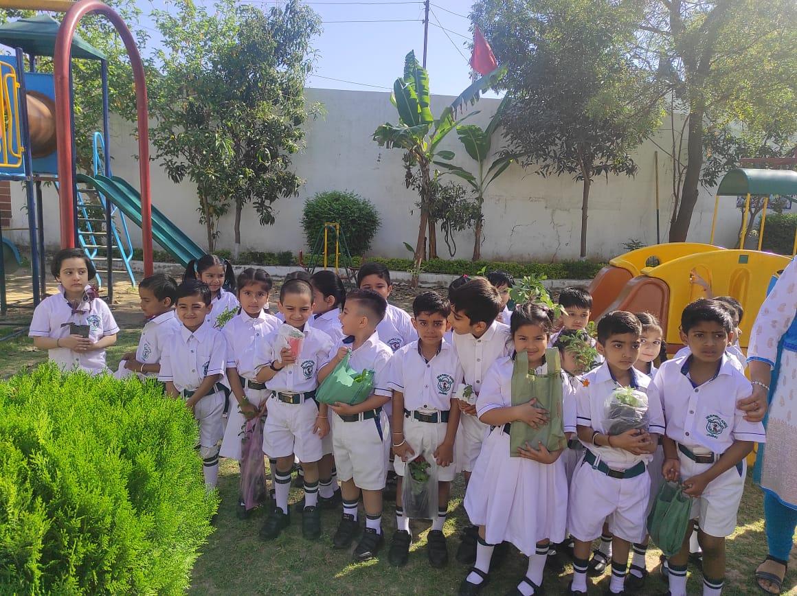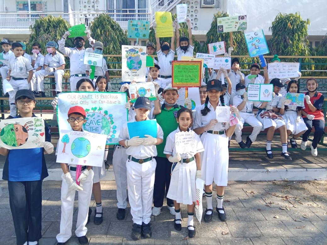The day commenced with a “Plantation drive” by the students of Pre-Primary wing with an aim of encouraging children to love and nurture nature. Students were encouraged to take care of their adopted plant so that it grows along with them. Children of classes Pre-Nursery to I planted a sapling and found a friend for life.Students of class Prep and I prepared banners with some thought provoking slogans in an attempt to awaken their commitment towards loving and preserving our planet Earth. Through these activities children explored ways to save planet earth from turning into a garbage bin while learning responsible habits towards our environment.