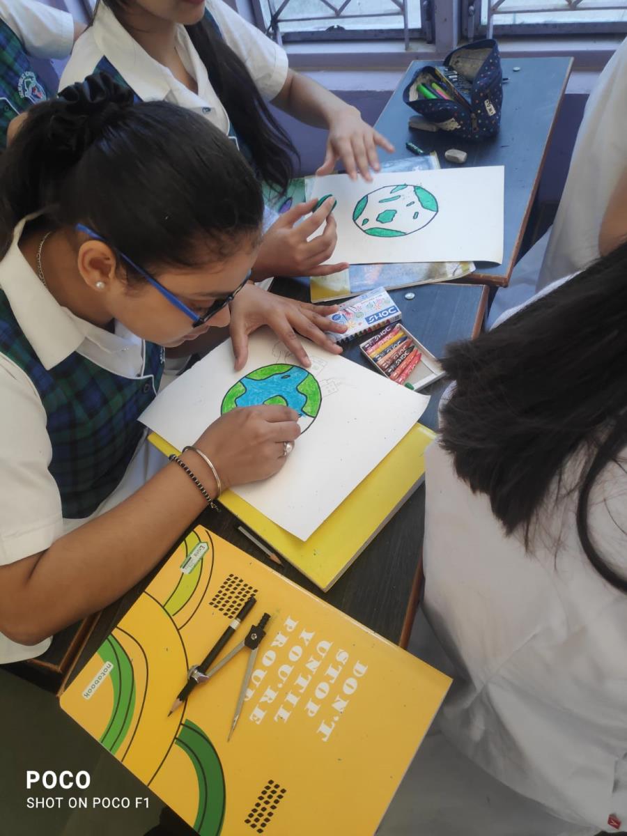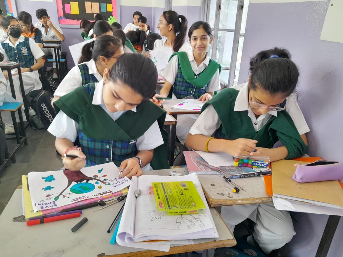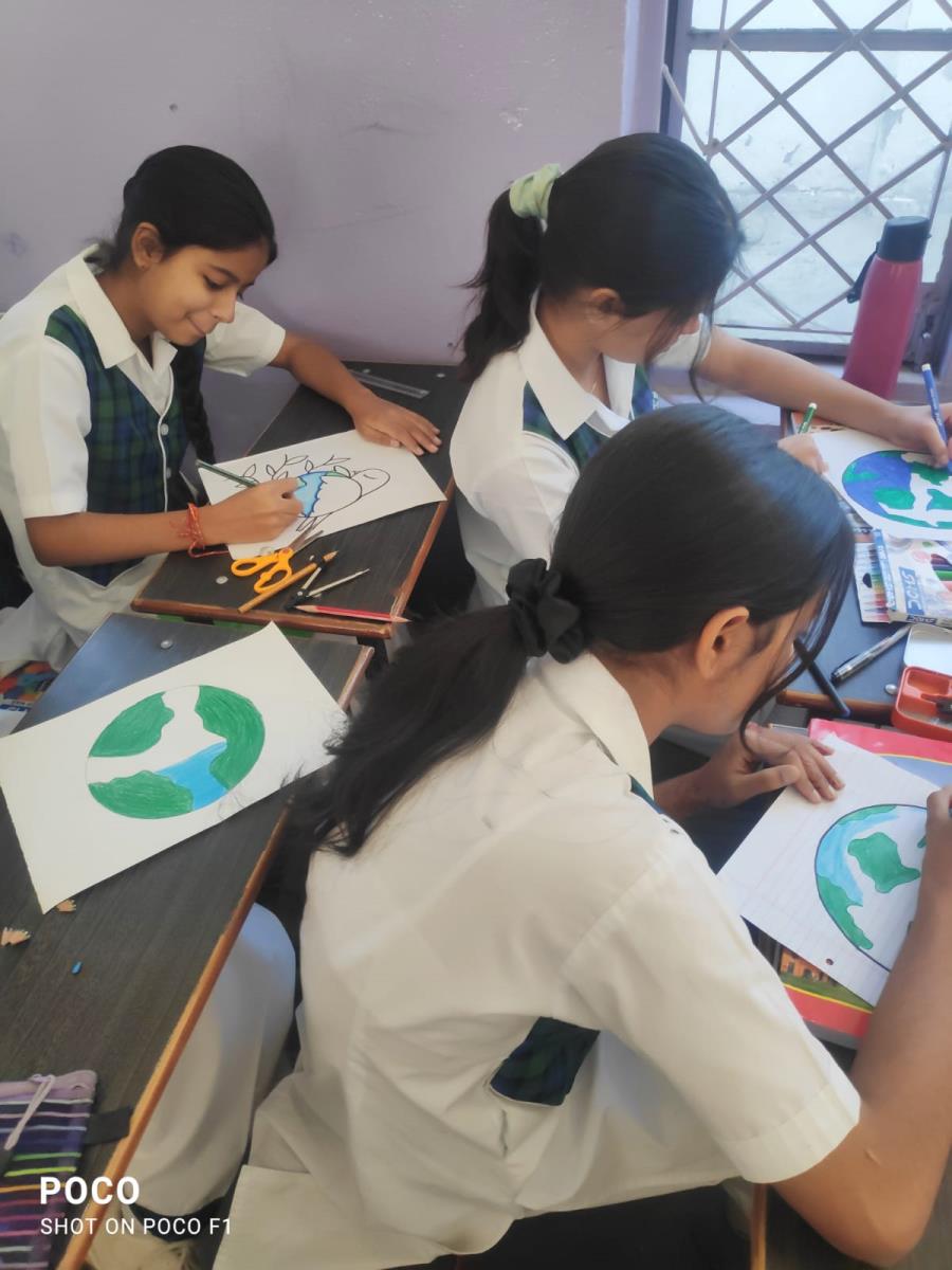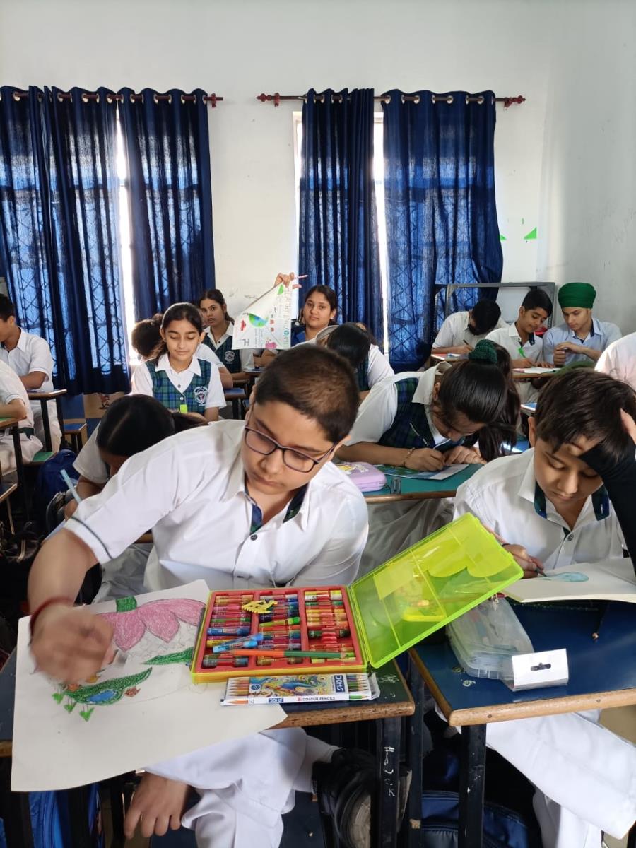 ‘Go Green Initiative’ Poster making activity under the theme ‘VasudhaivaKutumbkam’ was organized for classes XI and XII .The main motto of this activity was to promote SDG-13 (Climate Action) under which the students were made aware about saving natural resources, reducing pollution and planting trees to make the mother earth green, happier and healthier place to live in.Other goals of Sustainable Development were also discussed aiming to end poverty in all its dimensions and craft an equal, just and secure world for peace and prosperity.