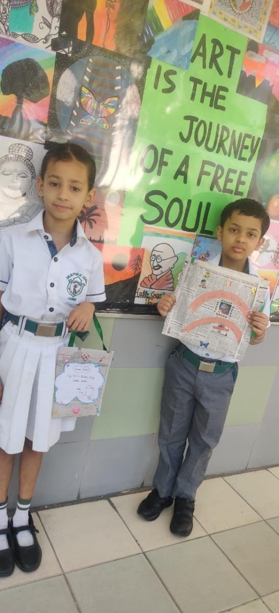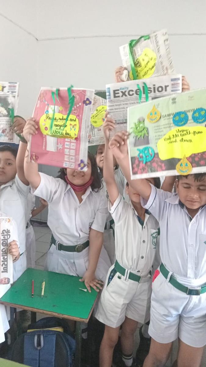 ‘Be a Designer’ activity was organized for The students of classes III, IV and V which triggered the young earth warriors to turn trash into treasure as they designed beautiful bookmarks,pen stands, envelopes and paper bags with inspiring quotes and learnt the art of reducing, reusing and recycling.