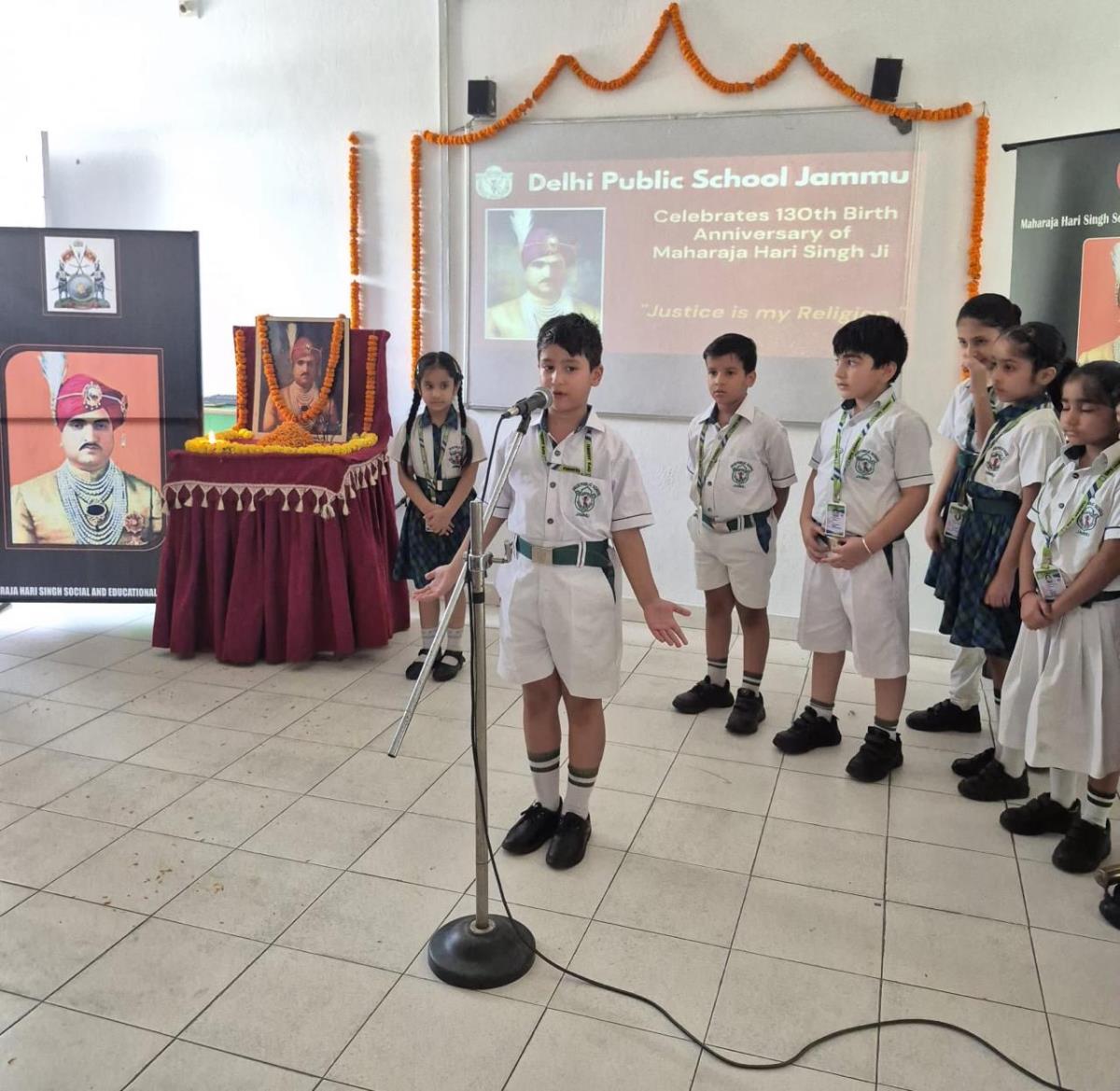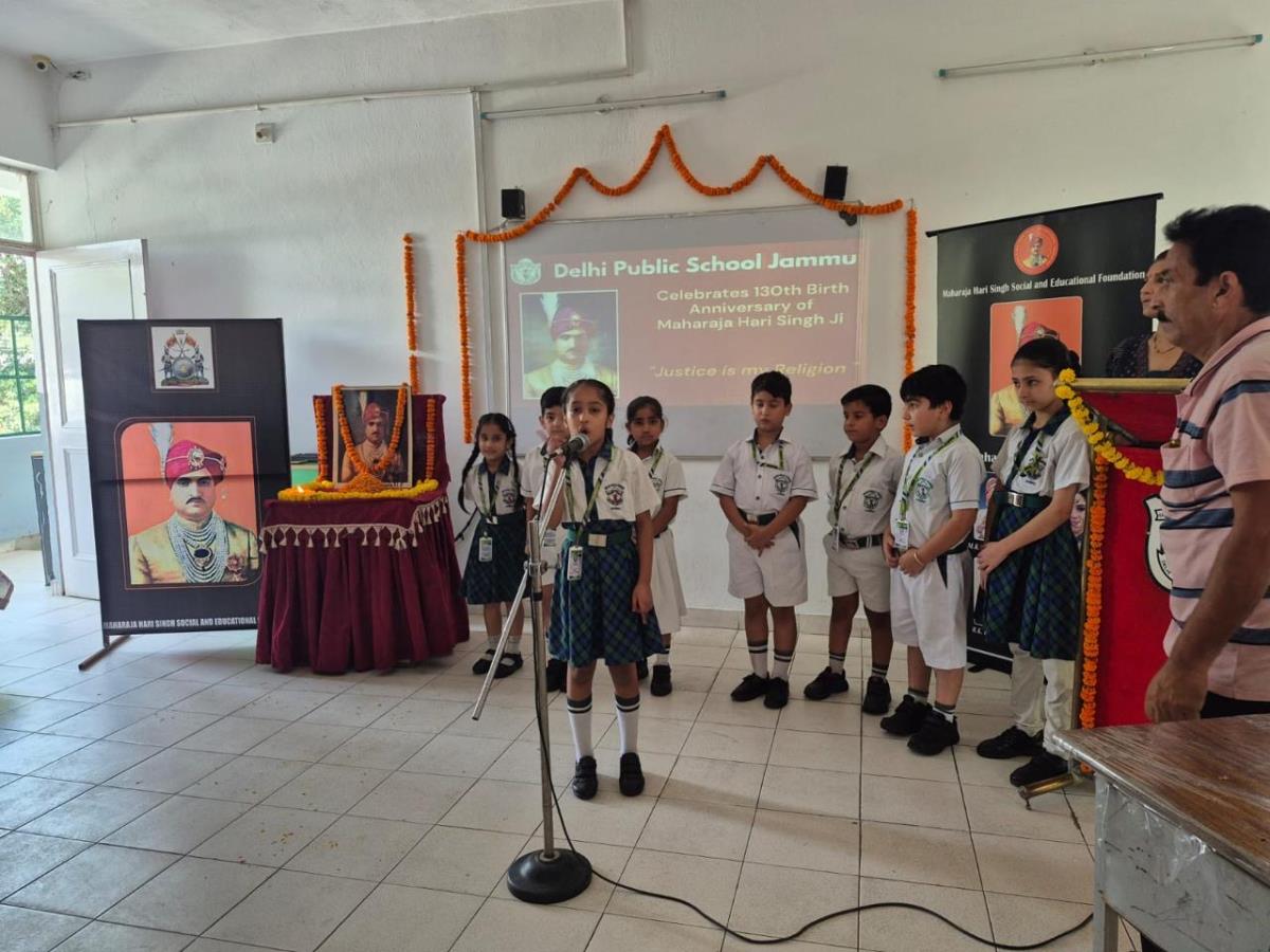 As part of its endeavour to instil timeless values in young learners, Delhi Public School Jammu, under the guidance of Hon’ble Founder and Pro-Vice Chairperson, Kunwrani Ritu Singh ji organised a special programme to mark the 130th Birth Anniversary of Maharaja Hari Singh Ji, the great Dogra ruler of Jammu & Kashmir.