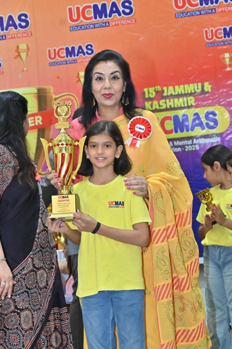 Khushali Gupta, a student of Class V-G at Delhi Public School Jammu, has brought laurels to the institution by winning the Champion Trophy in the 15th J&K UCMAS Abacus & Mental Arithmetic Competition 2025. The competition was held on 28th September 2025 at GDCT, Jammu, and the results were declared on 5th October 2025.