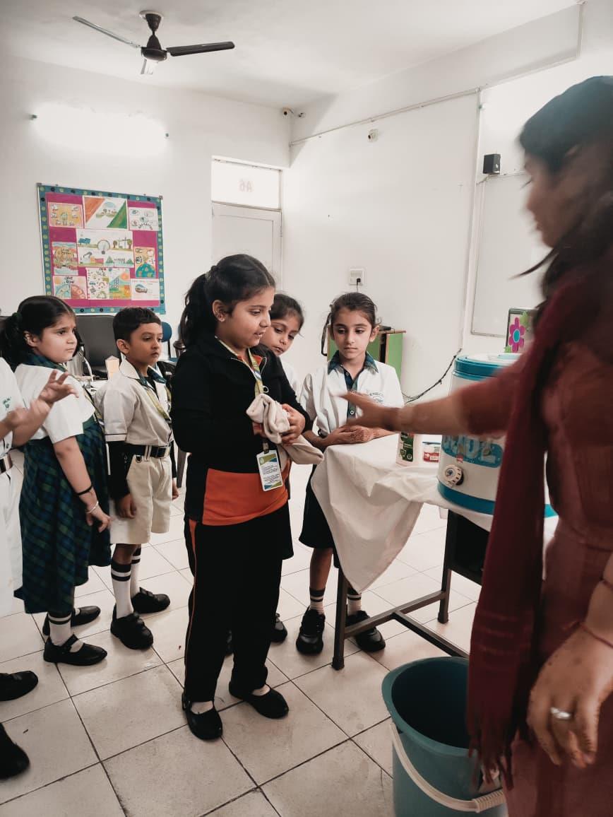 The session aimed to teach young learners the correct technique of handwashing and the importance of maintaining hygiene. Through interactive demonstrations, songs, and rhymes, children enthusiastically learned how to wash hands properly before meals and after play, while also understanding simple ways to save water and keep their surroundings clean.