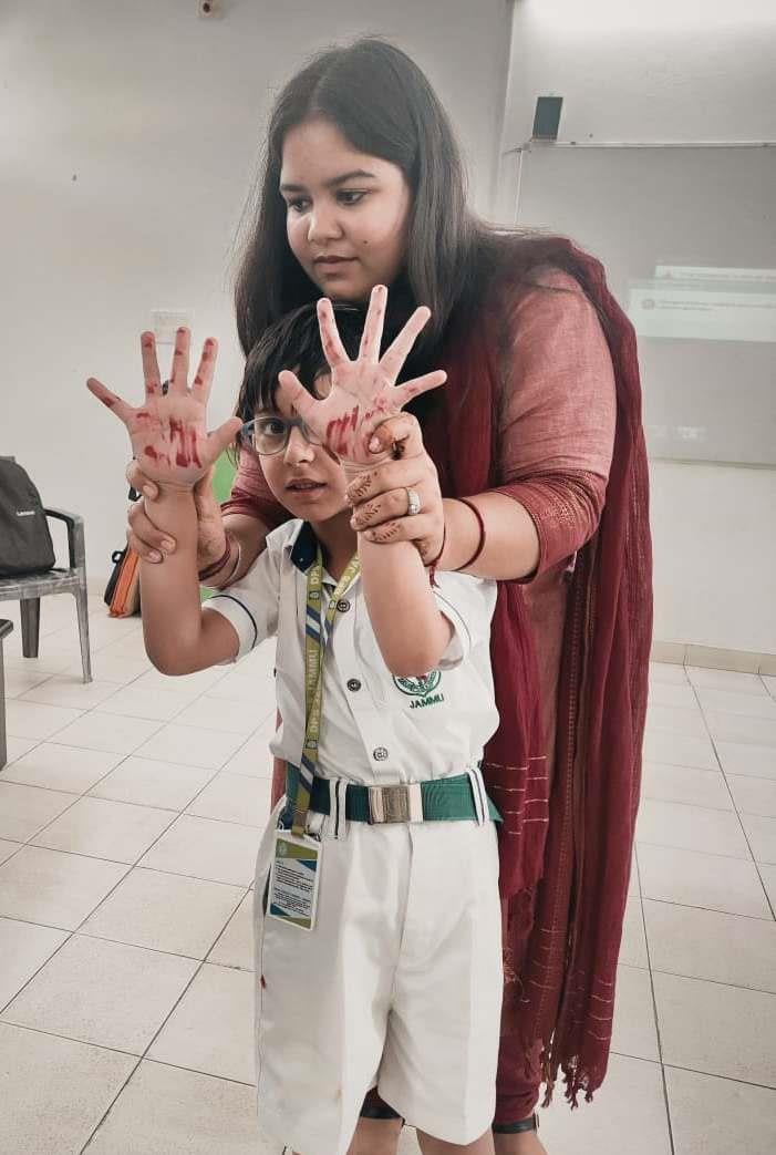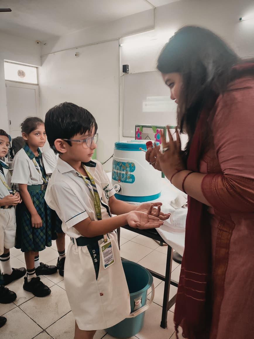 To make learning about cleanliness fun and meaningful, the Pre-Primary Wing of Delhi Public School Jammu organized a Handwash Awareness Activity for the students of Classes I and II. The initiative was conducted in collaboration with the Jammu Municipal Corporation (JMC) and their SwaaHa IEC Team, led by Ms. Divya Sharma and Ms. Geetika.