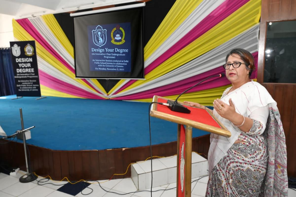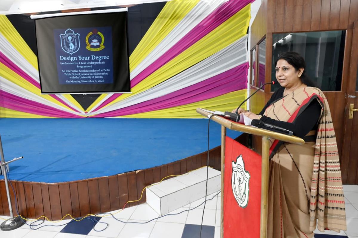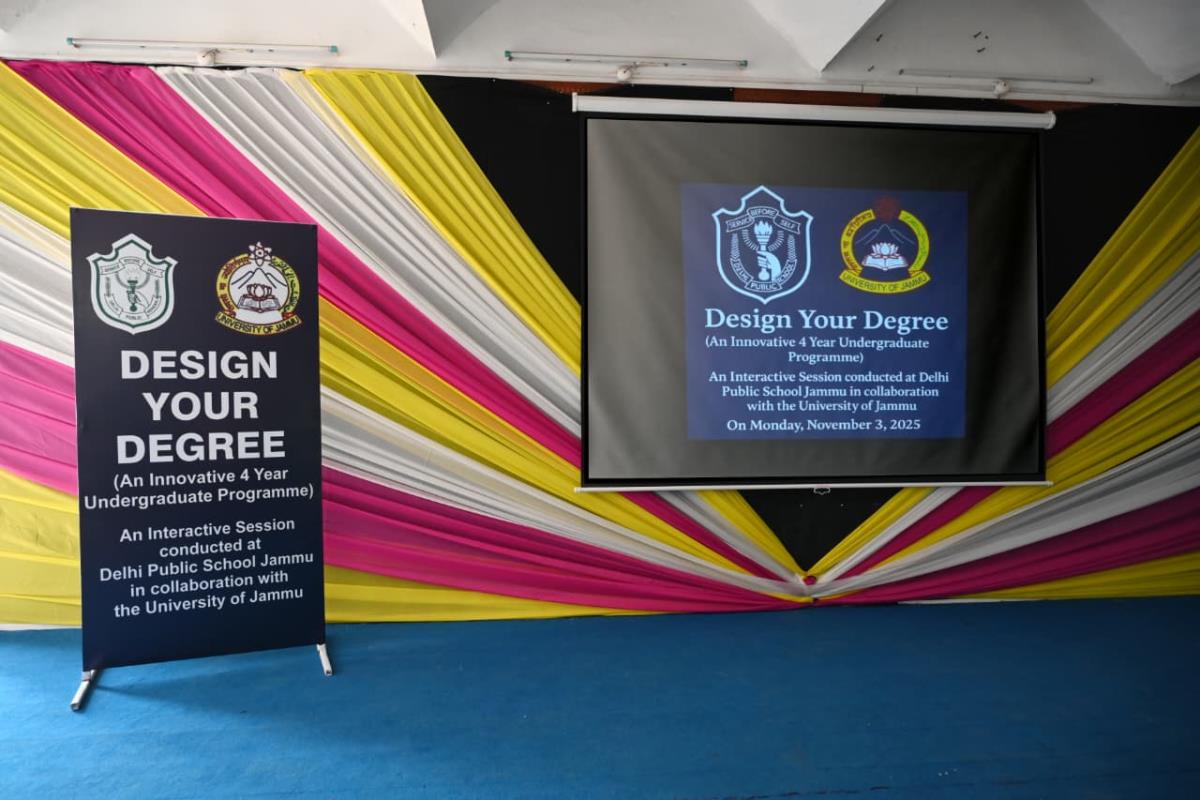 Delhi Public School Jammu successfully hosted a special session on “Design Your Degree” under the initiative and guidance of the Hon’ble Pro Vice Chairperson, Kunwrani Ritu Singh, in collaboration with the University of Jammu. The interactive programme aimed to familiarise senior students with the University’s innovative four-year undergraduate programme, designed in alignment with the National Education Policy (NEP) 2020. The initiative empowers students to pursue flexible, interdisciplinary, and choice-based learning pathways aligned with their interests, aptitude, and aspirations.
