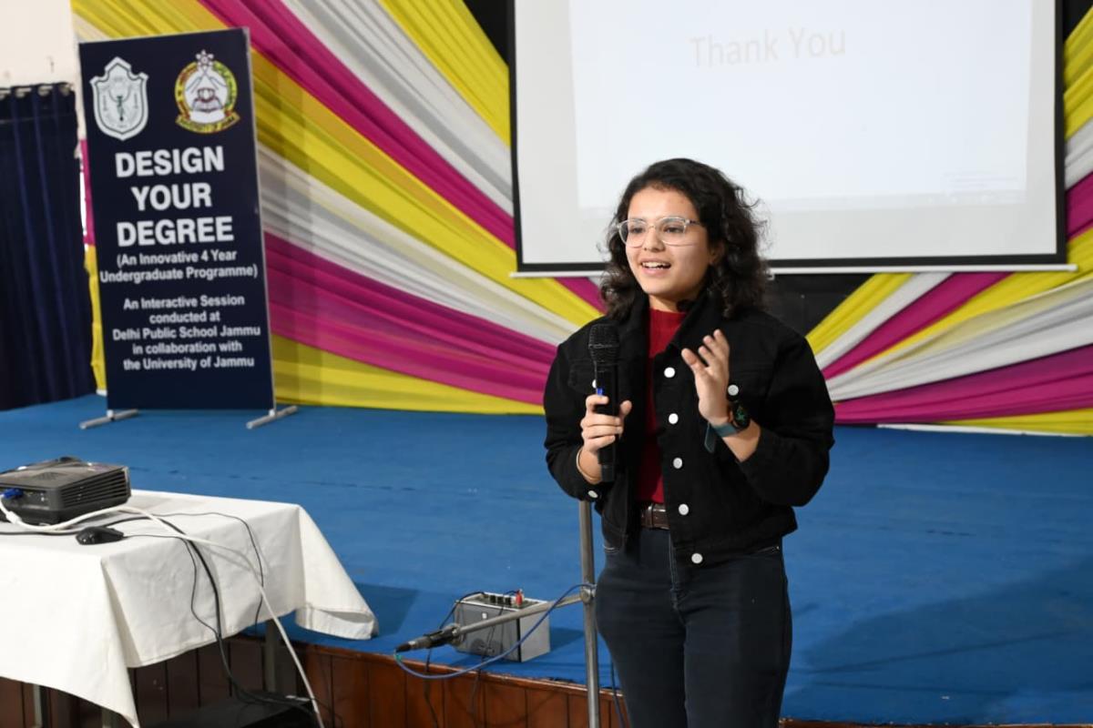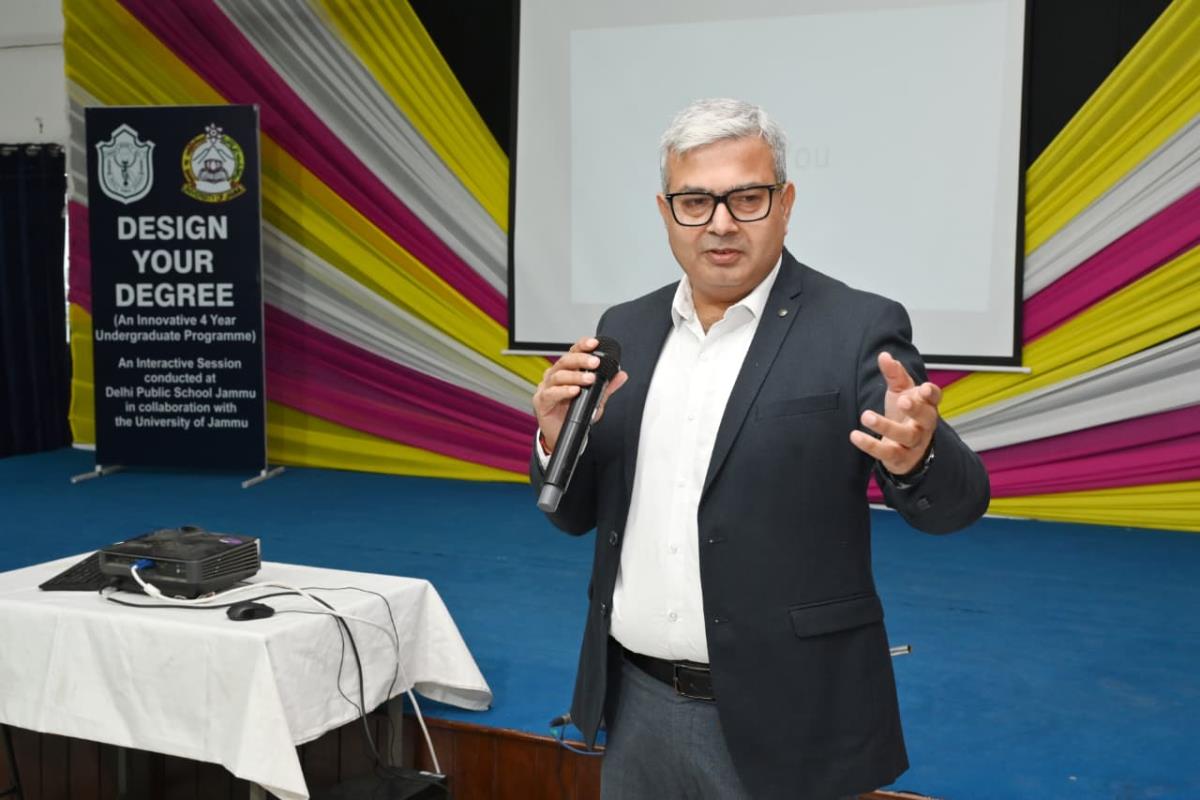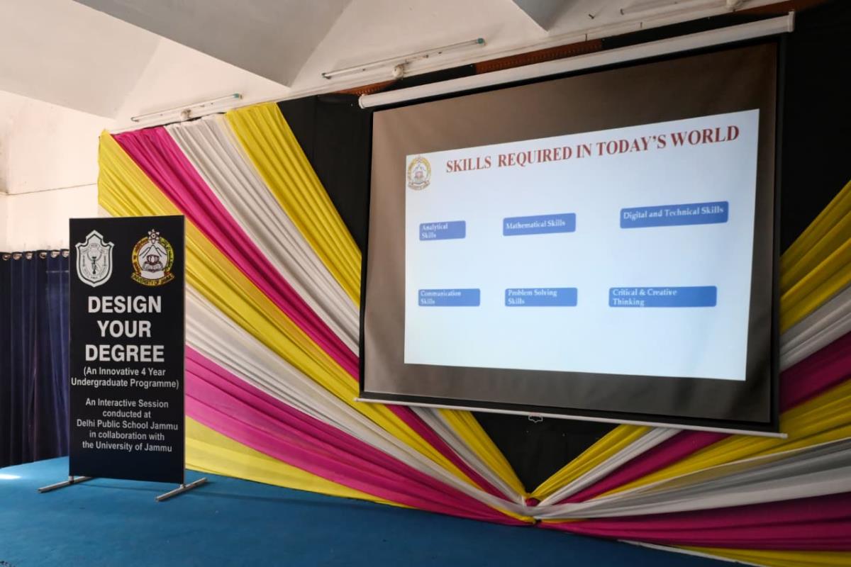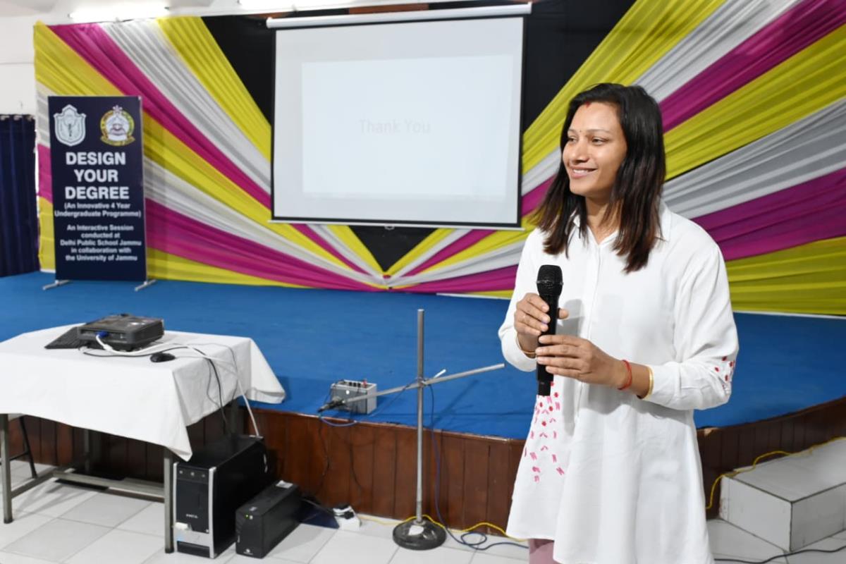 Delhi Public School Jammu successfully hosted a special session on “Design Your Degree” under the initiative and guidance of the Hon’ble Pro Vice Chairperson, Kunwrani Ritu Singh, in collaboration with the University of Jammu. The interactive programme aimed to familiarise senior students with the University’s innovative four-year undergraduate programme, designed in alignment with the National Education Policy (NEP) 2020. The initiative empowers students to pursue flexible, interdisciplinary, and choice-based learning pathways aligned with their interests, aptitude, and aspirations.