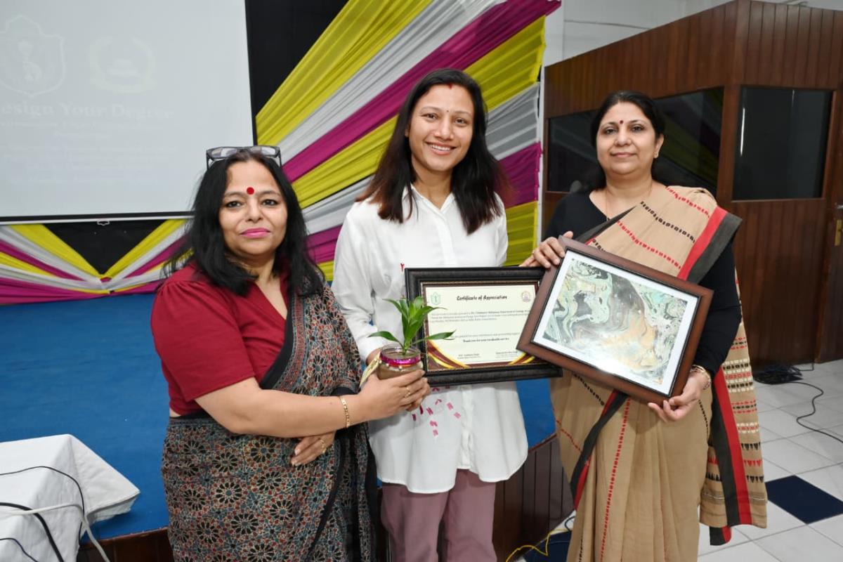 Three University students — Mr. Adil (B.Tech), Ms. Paridhi (B.Tech), and Mr. Narayan Choudhary (BBA), shared candid reflections on their learning journeys. They spoke about how the programme helped them gain confidence, secure internships, and explore diverse academic avenues, breaking traditional silos in higher education.